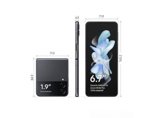 Le Galaxy Z Flip 4 se distingue par son design pliable innovant, permettant de réduire sa taille pour le transport tout en offrant une grande surface d’affichage lorsqu’il est déplié. Léger et ergonomique, il combine praticité et style moderne.