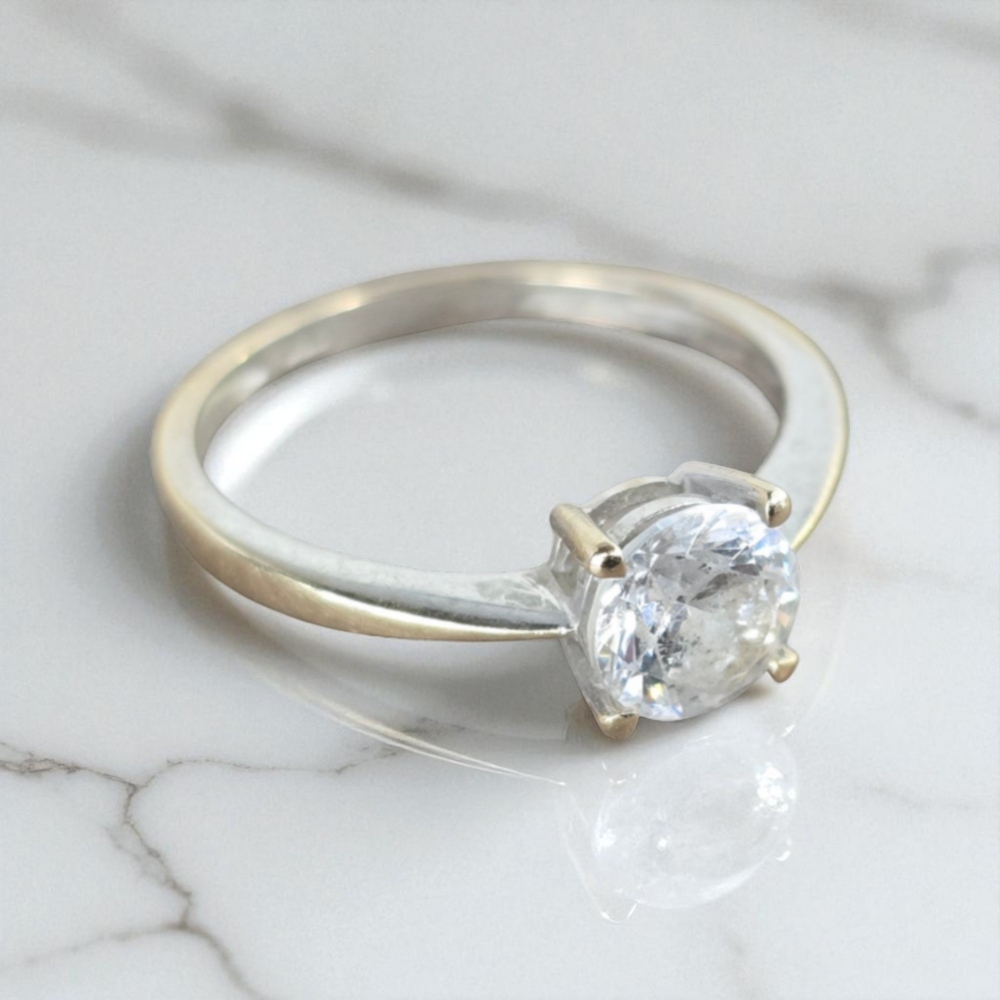 L’or blanc confère une finition soyeuse et contemporaine qui met en valeur la clarté cristalline de la pierre, parfaite pour symboliser l’amour, la pureté ou l’éclat d’un moment spécial. Que ce soit pour une occasion romantique, un cadeau raffiné ou un bijou du quotidien, cette bague est un véritable symbole de l’élégance sobre et précieuse.