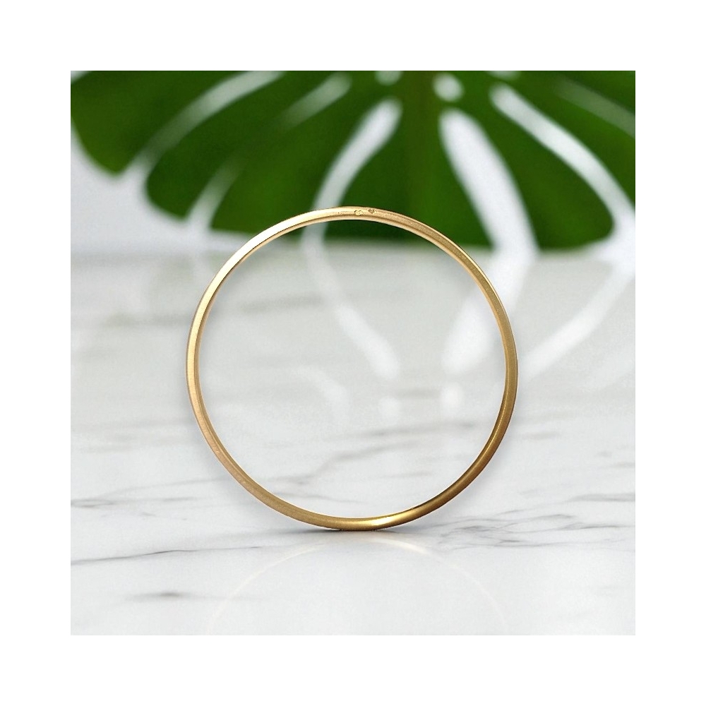 Ce jonc en or jaune 18 carats (750/1000) est un bijou intemporel qui allie élégance et raffinement. Avec son poids de 13,72 g et son diamètre de 6 cm, il offre une présence remarquable au poignet tout en restant confortable à porter.