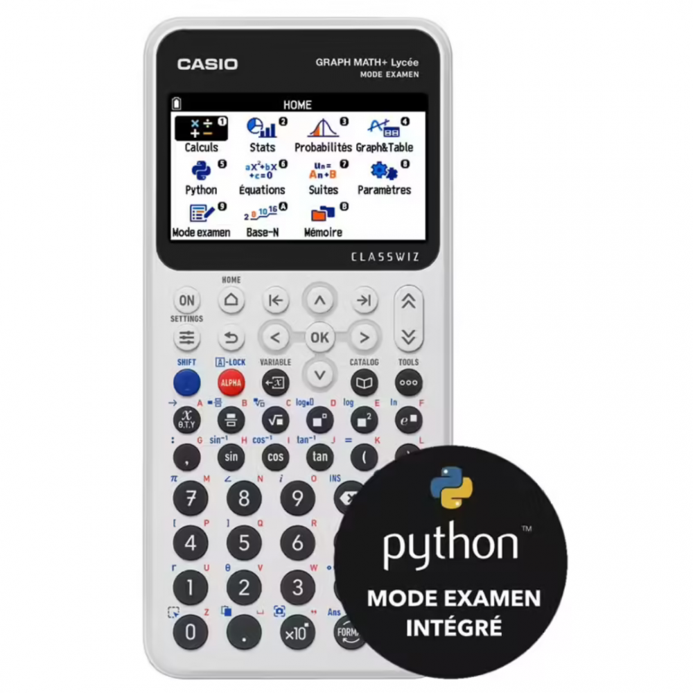 La CASIO Graph 90+E est une calculatrice graphique haut de gamme conçue pour les lycéens et étudiants...