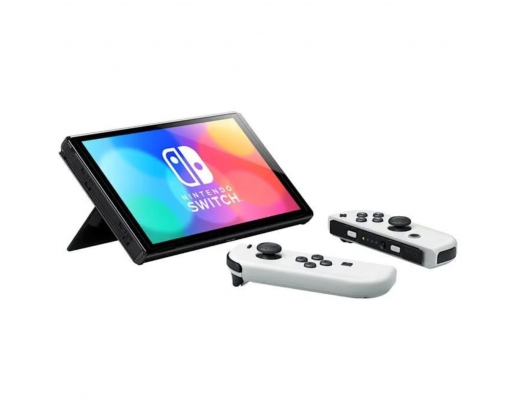 La Console Nintendo Switch OLED Blanche offre une expérience de jeu améliorée grâce à son écran OLED de 7 pouces aux couleurs éclatantes et aux contrastes profonds.